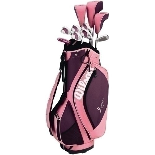 The Wilson Hope women's package set includes an offset driver, fairway wood, hybrid, perimeter-weighted irons, a winged putter, a cart bag, and 3 matching head covers. A percentage of proceeds from this product will be donated to the Breast Cancer Research Foundation. Features - Set Includes Graphite driver, fairway wood, hybrid, irons 5-PW; steel putter; fabric cart bag and head covers - Offset driver with tall face for distance and accuracy; BCRF ribbon alignment feature - Fairway wood - Hybrid greatly improves playability - Mid-size perimeter-weighted irons with wide sole to get the ball airborne - Pink metallic graphite shafts with distinctive accent trim - Lamkin soft compound grips - Moment-i, high-MOI winged putter - Upgraded cart bag designed for storage and organization - 3 matching headcovers for woods and hybrid Set Ladies Rh StandardCheck its out related products of Wilson Hope Ladies Complete Golf Set (Ladies, RH)